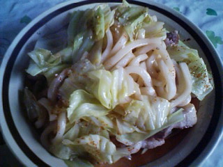 てか、もうただのキャベツと豚肉の炒めものにうどんが強引に武力介入したような…