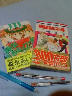 少年誌系(銀魂・REBORN!・ジャガーさん・絶望先生・エアギア)/BL(世界一初恋・純情ロマンチカ)/少女漫画(夏目・俺様ティーチャー・メイド様!・ホスト部)/other(DGS響・破天荒遊戯・最遊記)etc