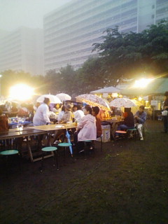 町内会の祭の会場が着々と設営されている